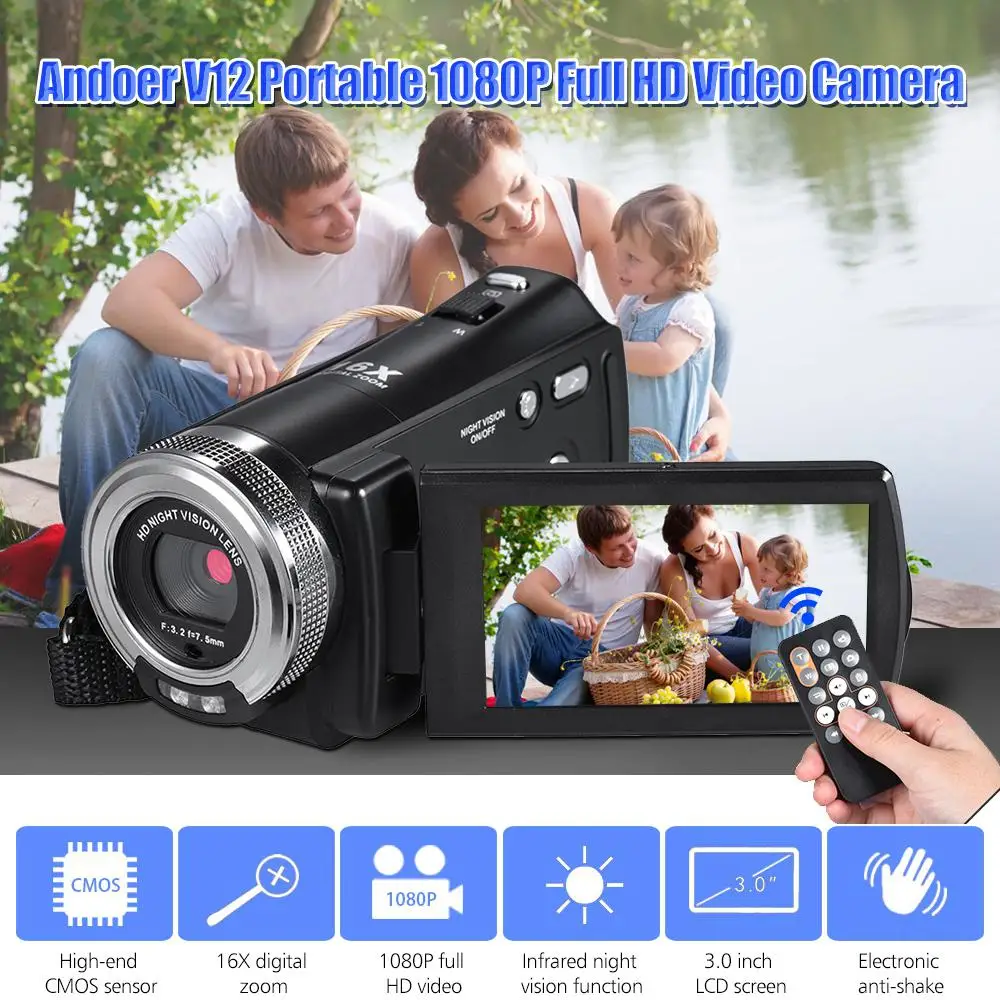 BEST QUALITY 1080P Video Camera Full HD 16X Digital Zoom Recording Camcorder Anti-Shake w/3.0 Inch Rotatable LCD
