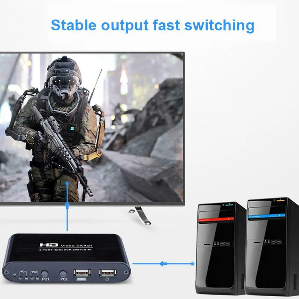 HIGH QUALITY 2 Port Video Home HDMI Switcher For Sharing Monitor Keyboard Mouse Splitter High Speed KVM 4K Plug
