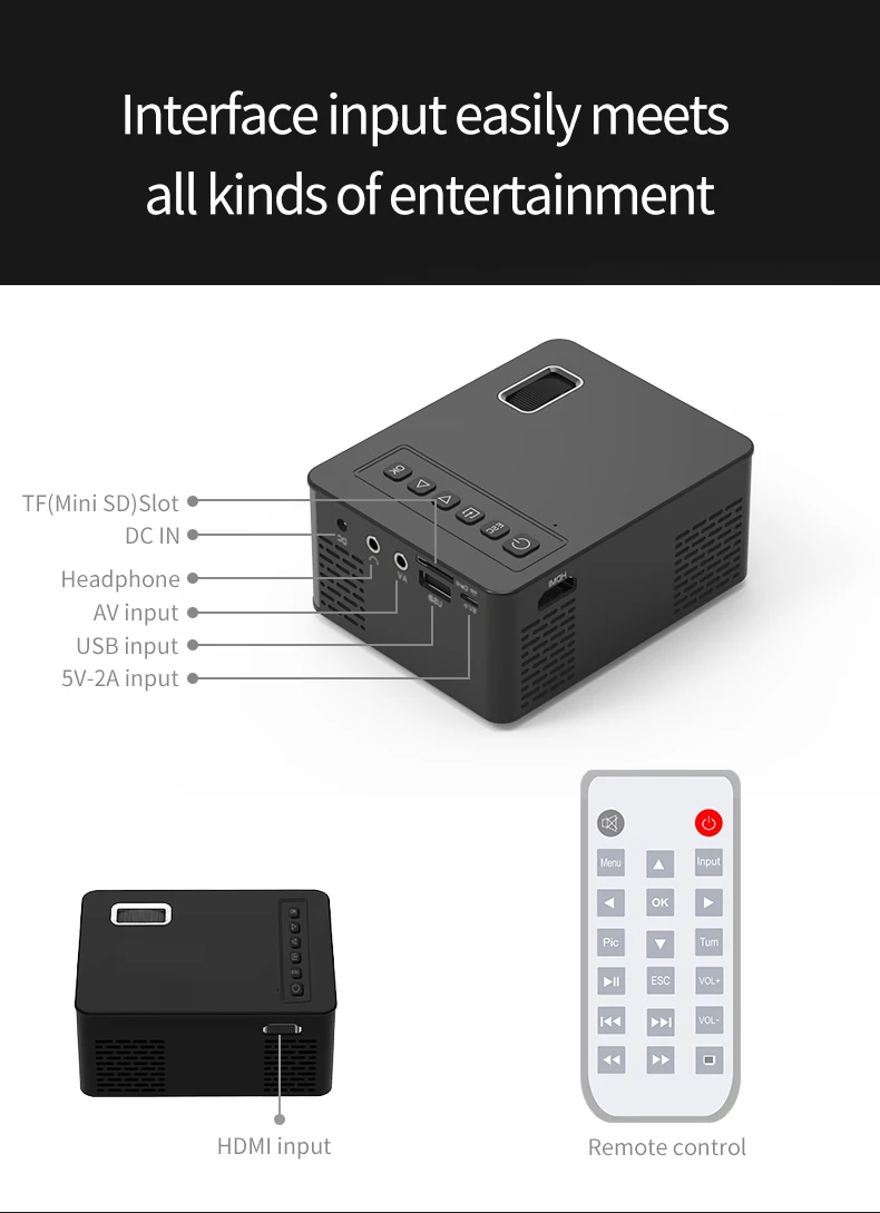 Mini Micro LED Cinema Portable Video HD USB HDMI Projector for Home Theater Short Focus Design T200