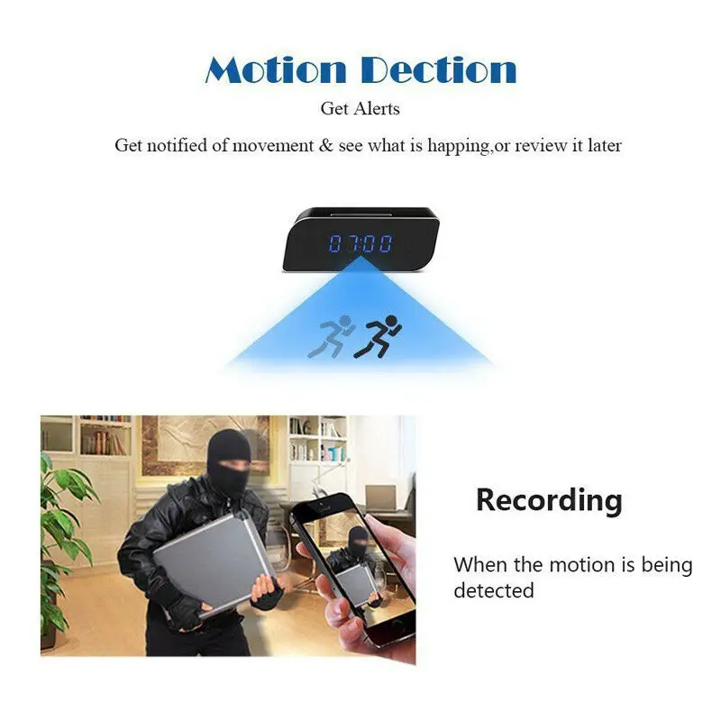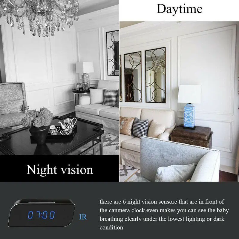 HD 1080P Mini WIFI Camera Clock Wireless Home Night Vision Video Security Motion Detect Mini IP Cam