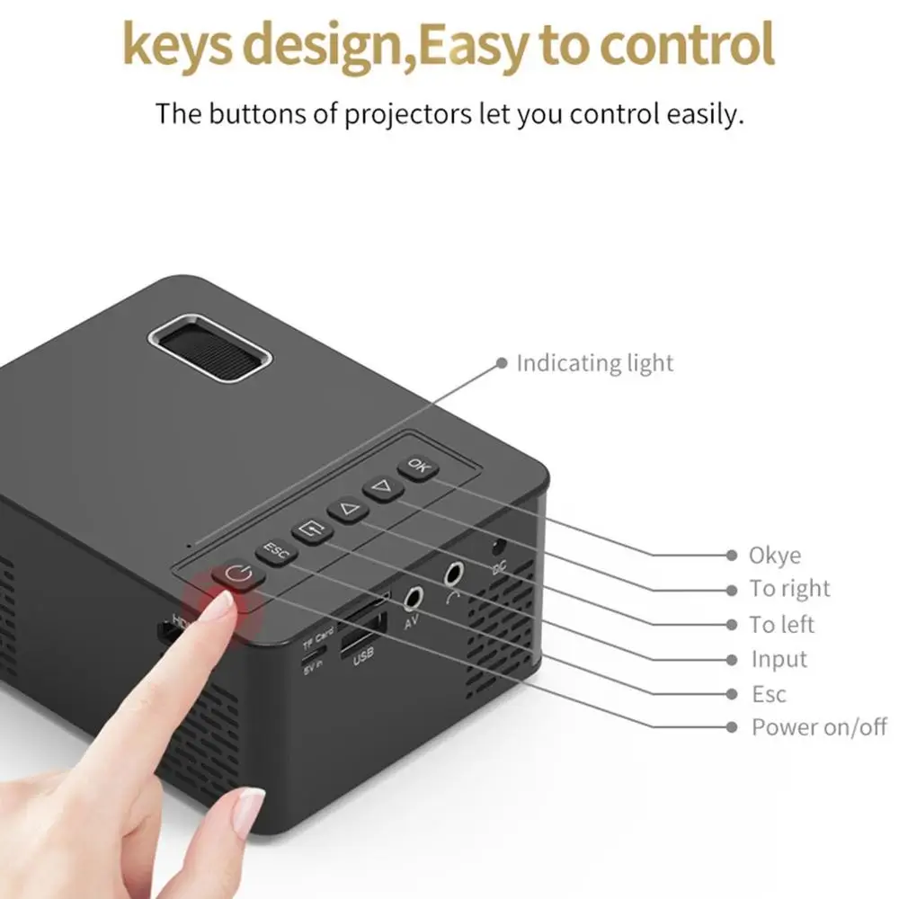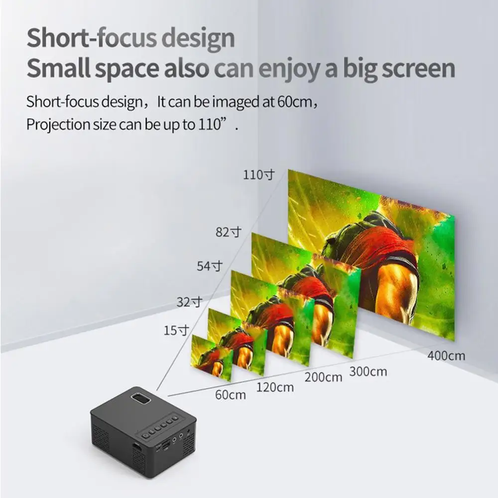 Mini Micro LED Cinema Portable Video HD USB HDMI Projector for Home Theater Short Focus Design T200